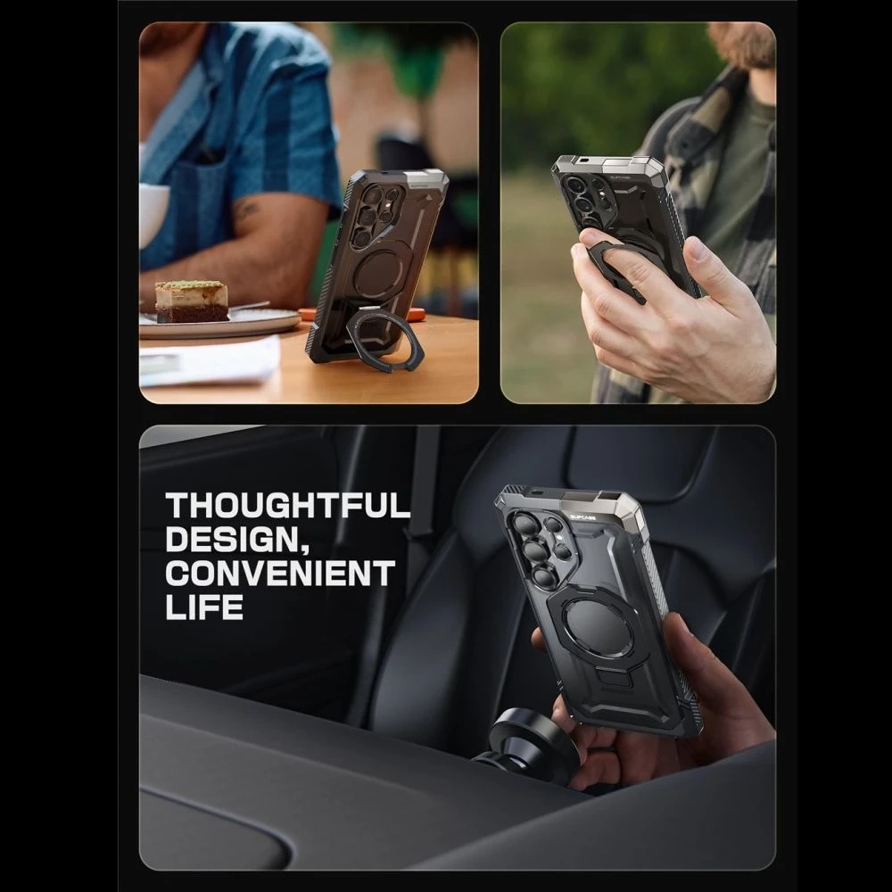 Supcase UB Grip Magsafe to etui, które łączy w sobie wytrzymałość, funkcjonalność oraz elegancki design. Wykonane z odpornego na uderzenia materiału TPU, posiada wzmocnione narożniki, które zapewniają ochronę przed upadkami zgodnie z normami wojskowymi MIL-STD 810G (do 15 stóp). Obudowa wyróżnia się militarnym stylem co nadaje urządzeniu nowoczesny wygląd, jednocześnie chroniąc go przed zarysowaniami.
