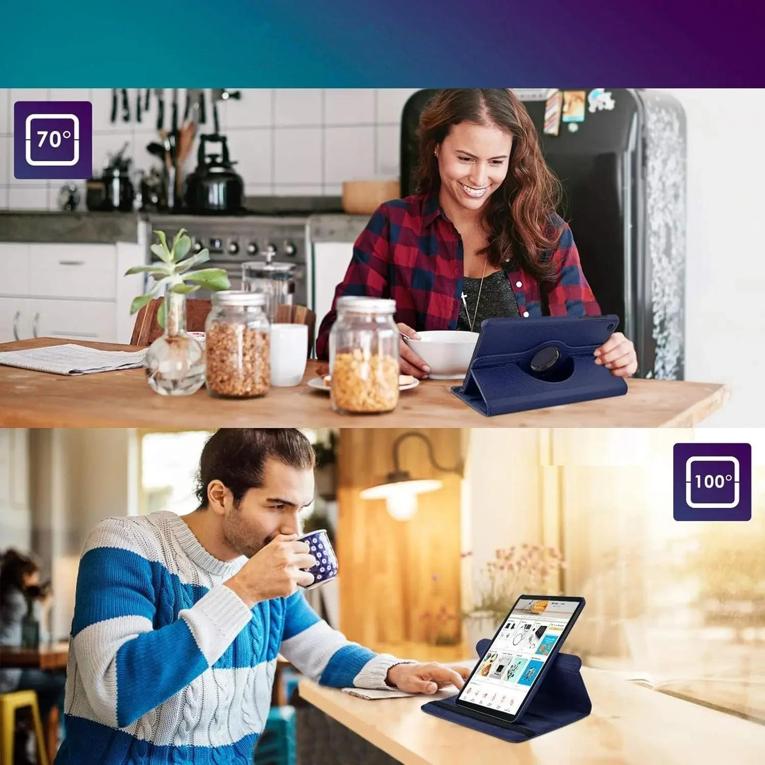 Etui zostało wyposażone w obrotowy stojak 360°, który umożliwia ustawienie tabletu w dwóch pozycjach - pionowej i poziomej, a także pod dwoma różnymi kątami nachylenia.