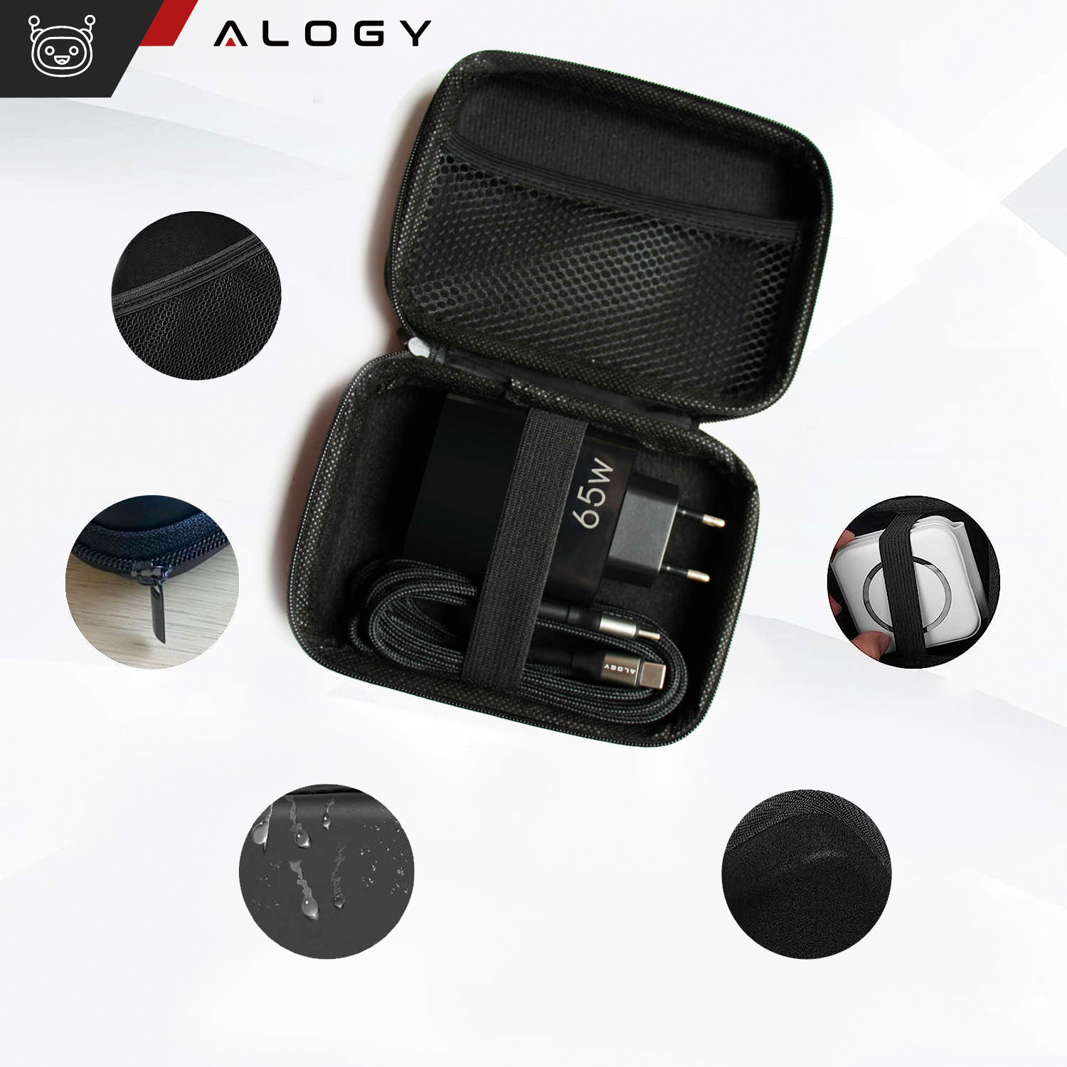 Etui zapinane Alogy jest przeznaczone do przechowywania i bezpiecznego przenoszenia różnych przedmiotów, takich jak kabli, ładowarki, pendrive'y, słuchawki oraz inne mniejsze rzeczy, które można uporządkować i zorganizować w jednym miejscu.