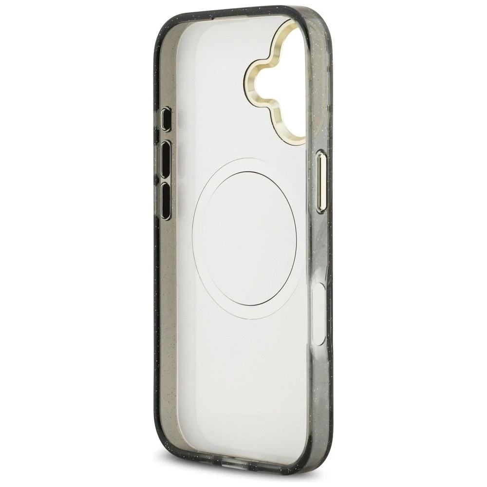 Etui Guess IML Metal Glitter Flowers Triangle MagSafe do iPhone 17 to połączenie elegancji, modnego designu i ochrony premium. Czarna kolorystyka z kwiatowym wzorem i subtelnym połyskiem brokatu sprawia, że smartfon zyskuje wyjątkowy charakter. Subtelne logo Guess i magnetyczny pierścień MagSafe czynią z etui zarówno praktyczne, jak i prestiżowe akcesorium.