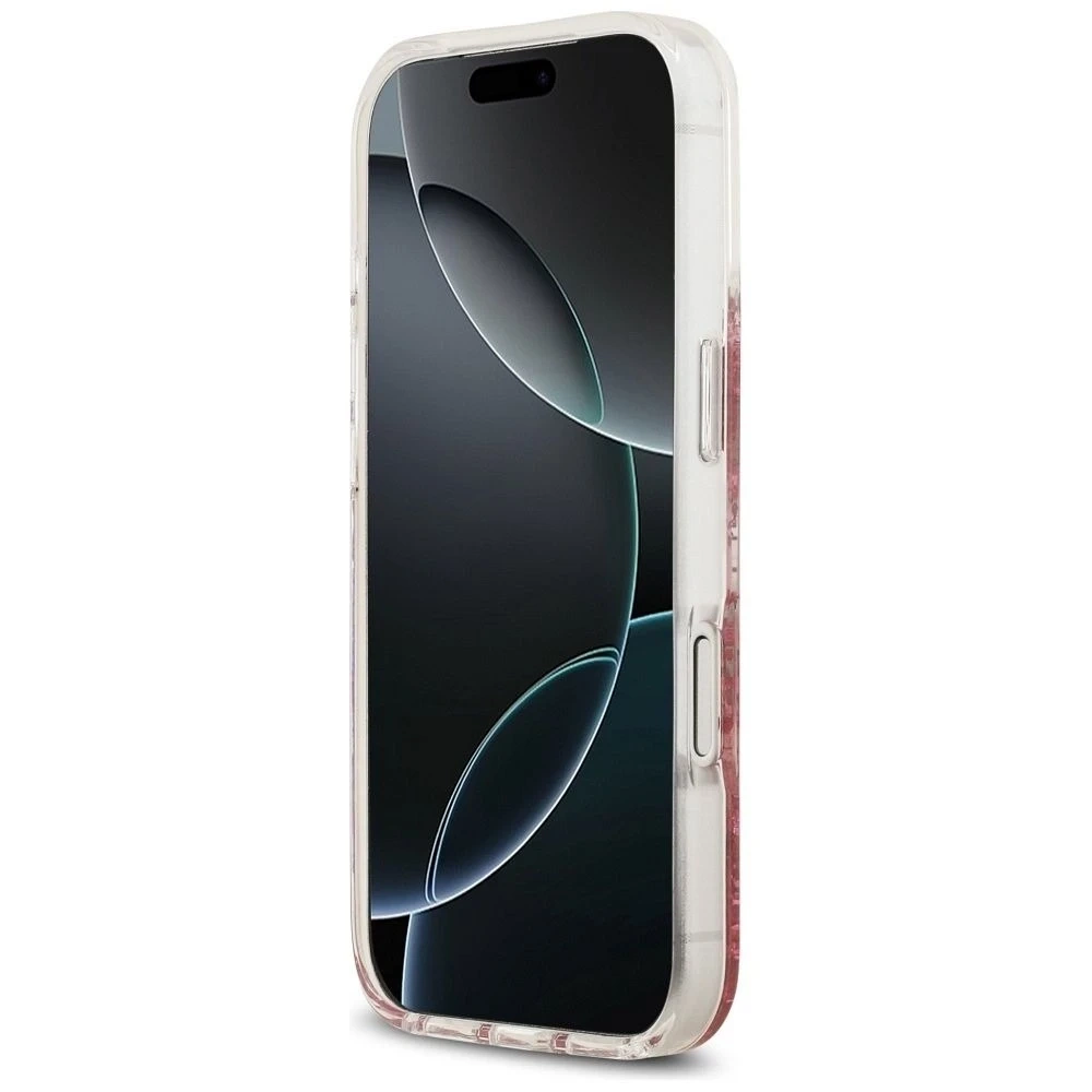 Etui Guess MagSafe do iPhone 17 Pro Resin Bottom Glitter Pink