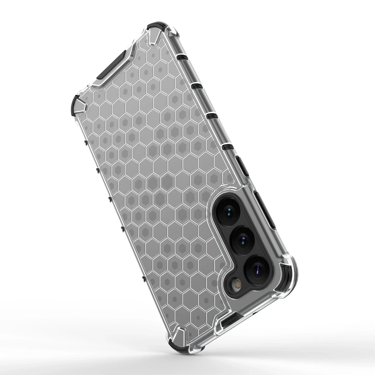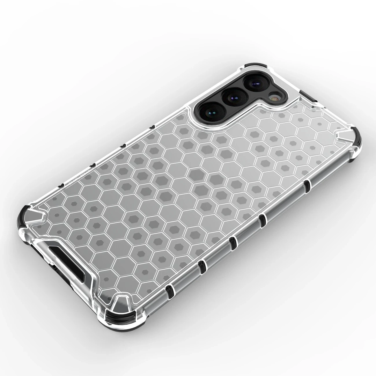 Etui z serii Honeycomb jest wykonane z termoplastycznego i wytrzymałego tworzywa, które układa się w kształcie plastra miodu. Pokrowiec jest dopasowany do Samsung Galaxy S23+ , doskonale chroni telefon przed zniszczeniami wskutek upadków lub zarysowań (na przykład przez noszone w kieszeni klucze). Podniesione krawędzie dookoła ekranu i tylnego aparatu zabezpieczają telefon od zarysowania tych elementów kiedy ten leży na płaskiej powierzchni. Posiada responsywne przyciski i wycięcia na porty. Idealny dla osób, które cenią sobie styl, jakość i chcą zadbać o swoje urządzenie.