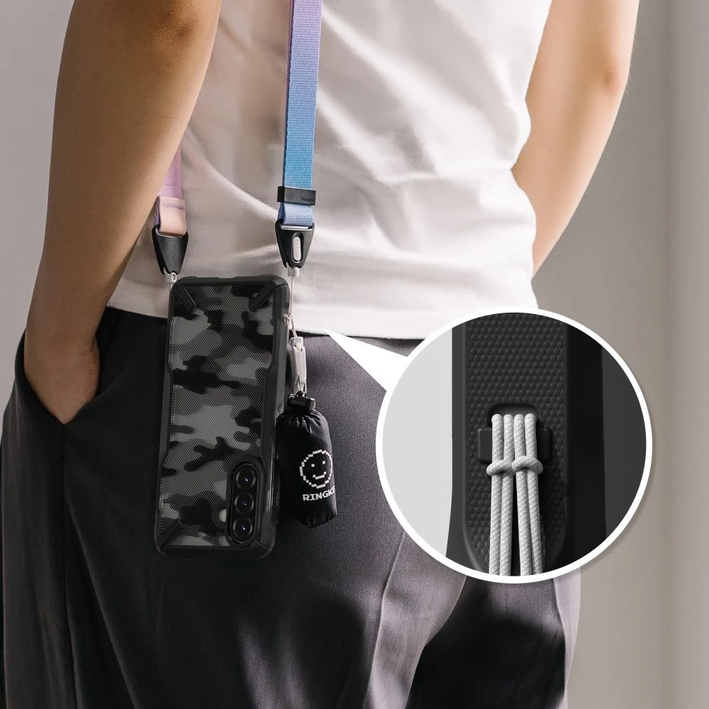 Ringke Fusion X Camo Black to etui, które łączy militarną wytrzymałość z nowoczesnym designem. Dzięki przezroczystemu tyłowi podkreśla oryginalny wygląd telefonu, a wzmacniana konstrukcja skutecznie chroni urządzenie przed uszkodzeniami.