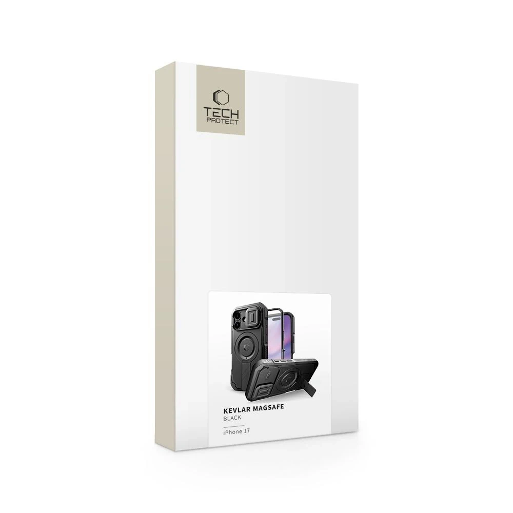 Etui Ochronne do iPhone 17 Tech-Protect Kevlar MagSafe Black Tech-Protect Kevlar MagSafe do iPhone 17 to etui pancerne 360° z certyfikatem MIL-STD-810H. Hybrydowa konstrukcja z szybą, poduszkami powietrznymi i podstawką chroni telefon w każdych warunkach, zachowując pełną kompatybilność z MagSafe. Cena katalogowa