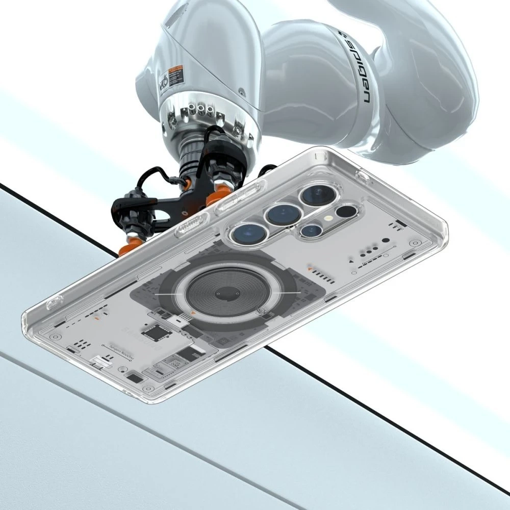 Spigen Ultra Hybrid MagSafe Galaxy S25 Ultra NEO ONE to etui, które perfekcyjnie łączy nowoczesny design z niezawodną ochroną. Hybrydowa konstrukcja łącząca elastyczny materiał TPU oraz twardy poliwęglan (PC) oferuje połączenie wytrzymałości i elegancji. Przezroczysty panel pozwala na zachowanie oryginalnego wyglądu telefonu, jednocześnie chroniąc go przed codziennymi uszkodzeniami.