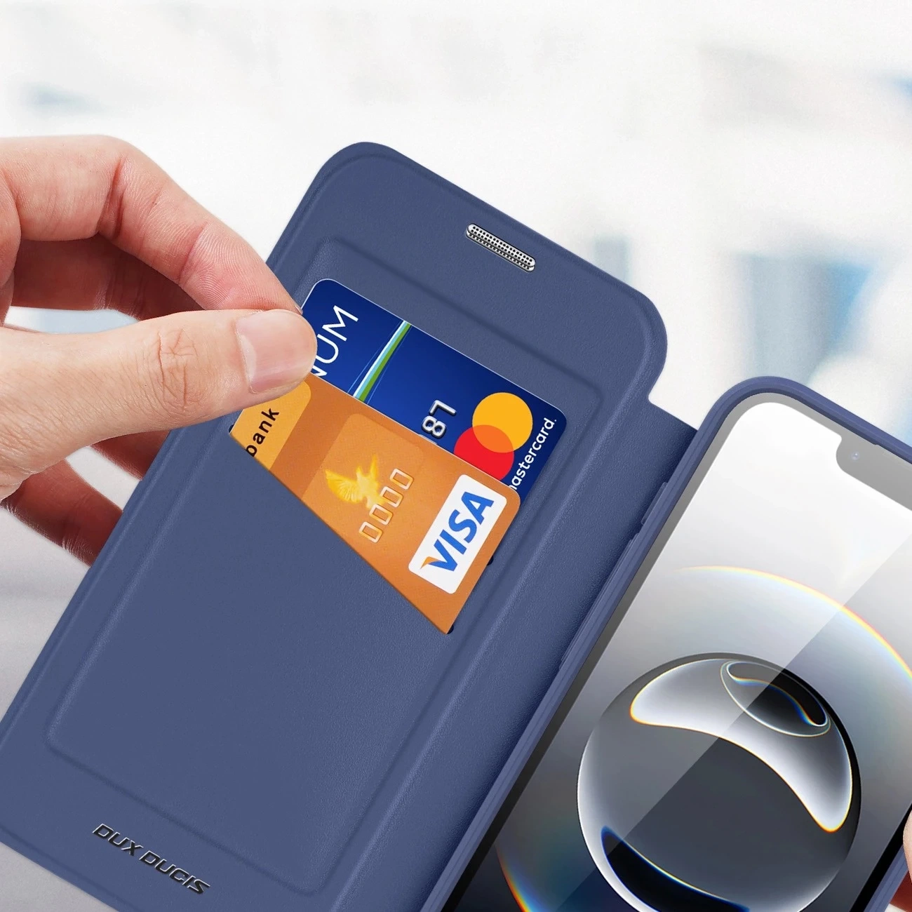 • Magnetyczne zamykanie – chroni telefon przed przypadkowym otwarciem etui.