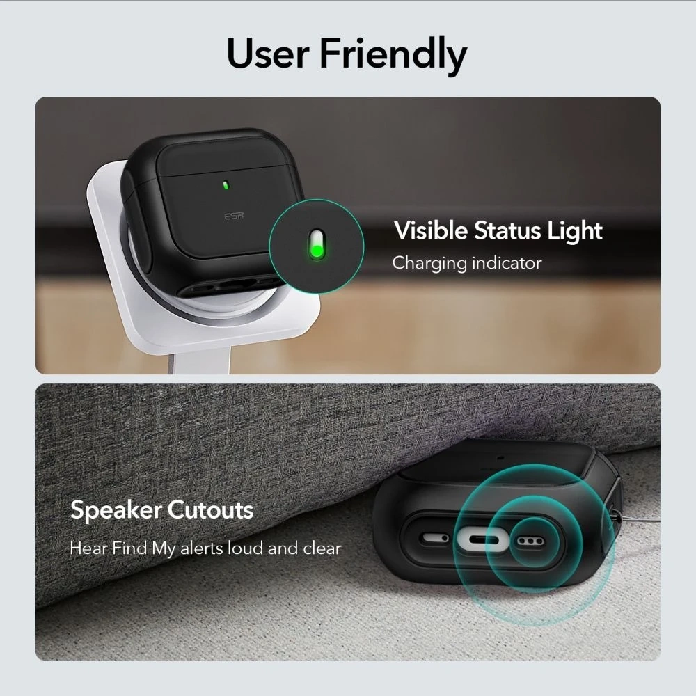 Idealnie dopasowany, z precyzyjnie wykonanymi wycięciami na głośniki oraz diodę informującą o stanie naładowania.