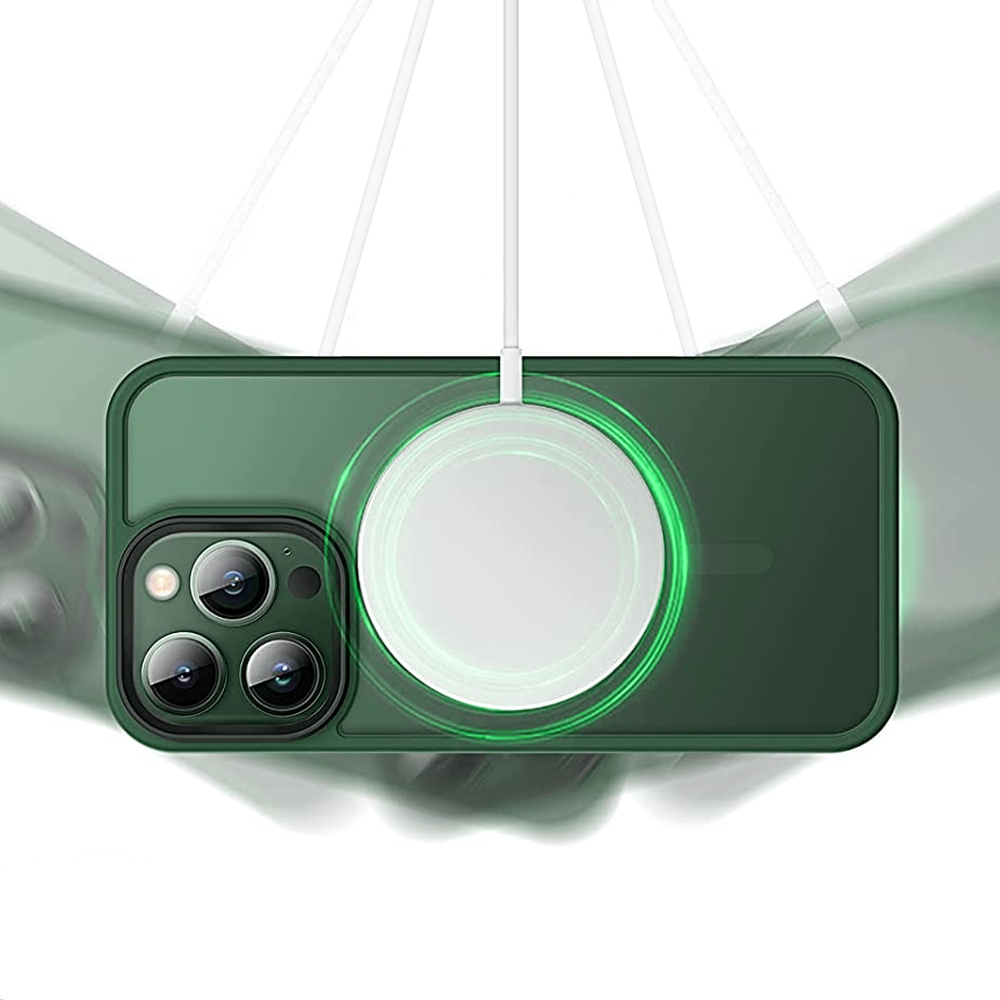 Etui posiada wbudowany magnes na pleckach dzięki czemu jest kompatybilne z ładowarkami jak i akcesoriami magnetycznymi np. skórzany portfel MagSafe.
