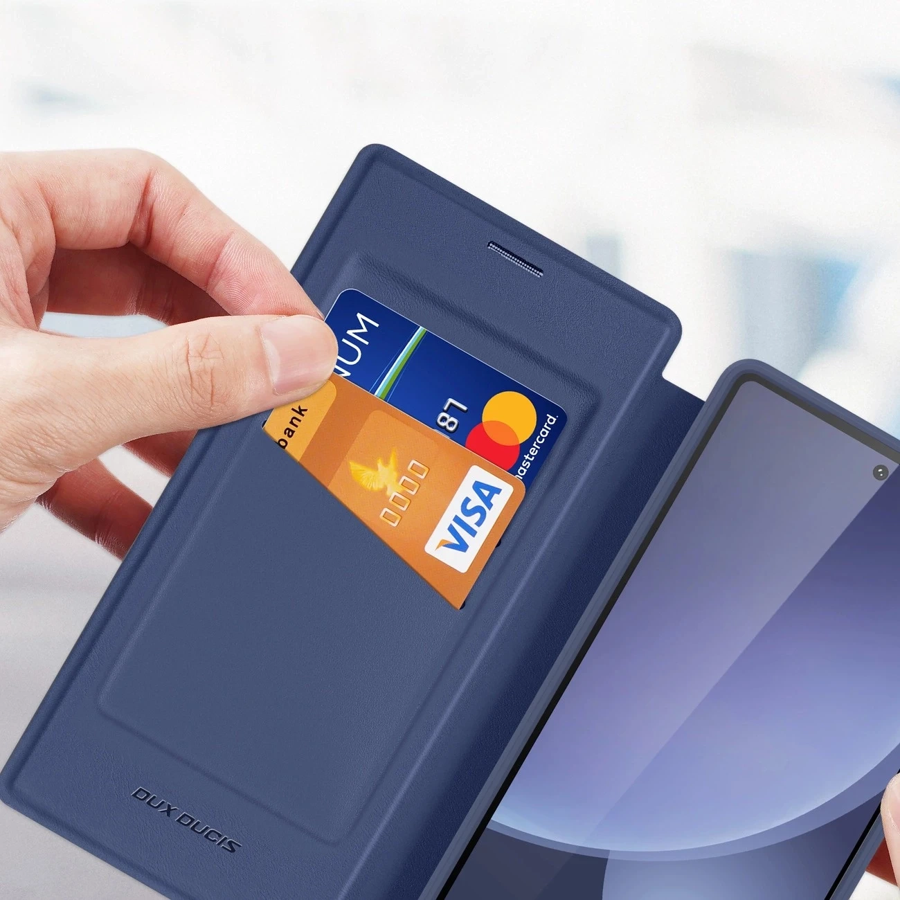 Minimalistyczny wygląd w kolorze granatowym sprawia, że etui idealnie pasuje zarówno do codziennego użytkowania, jak i formalnych okazji. To wszechstronne akcesorium, które zastąpi tradycyjny portfel i zadba o bezpieczeństwo Twojego Galaxy S25 Ultra.