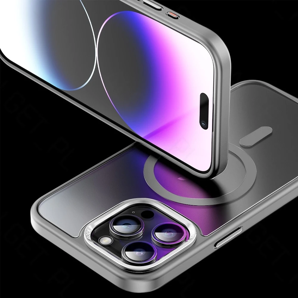 Obudowa ROCK Metal Lens MagSafe do iPhone 15 Pro 6,1" - to etui renomowanej marki ROCK. Wykonane zostało z najwyższej jakości trwałego i elastycznego PC i TPU, przez co nakładanie go jest niezwykle proste. Zabezpiecza telefon przed zarysowaniami i uderzeniami. Aluminiowa osłona wokół aparatu stanowi doskonałą ochronę dla soczewek. Idealnie wyprofilowana obudowa, zapewnia wygodne użytkowanie i pewny chwyt. Specjalne otwory nie zasłaniają mikrofonu czy głośnika oraz pozwalają na łatwy dostęp do portu ładowania. Pokrowiec wyposażony jest również w magnetyczny pierścień kompatybilny z technologią MagSafe. Etui posiada nowoczesny design - matowe plecy i czarna obwódka tworzą ciekawą i nietypową kompozycję, dzięki czemu wyróżnisz swój telefon z tłumu.