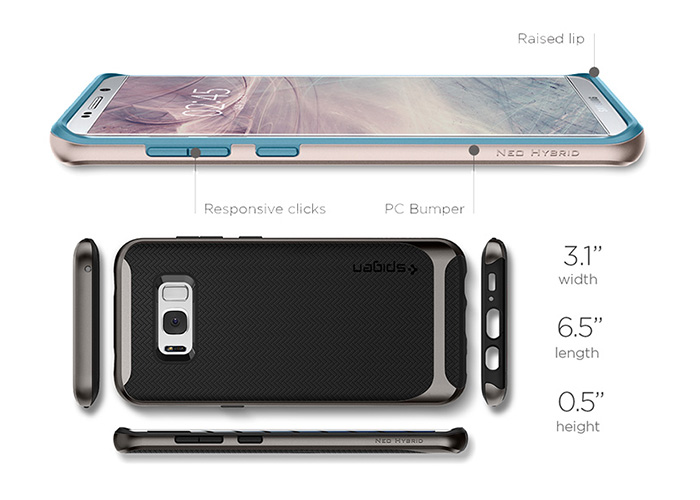 Etui Spigen Neo Hybrid Samsung S8+ Plus to nakładka składająca się z twardej poliwęglanowej ramki odpornej na promieniowanie UV oraz elastycznej obudowy wykonanej z wysokiej jakości poliuretanu. Ramka w szczególności chroni krawędzie urządzenia. Ponadto etui wyposażone jest w rant wystający ponad ekran, który chroni go przed zarysowaniami i brudem. Poliuretanowe osłony przycisków są o wiele bardziej odporne na ścieranie, chroniąc przed kurzem i brudem. Obudowa posiada konstrukcję, która absorbuje siłę uderzenia i rozprowadza ją po równo we wszystkich kierunkach.