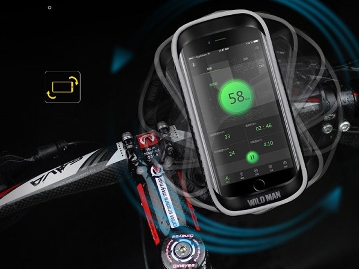 Uchwyt na rower z zewnątrz posiada przezroczyste okienko, które dzięki swoim właściwościom zapewnia kompatybilność z ekranami dotykowymi. Na dole etui znajdują się specjalne otwory dedykowane na kable i słuchawki. Etui może służyć jako podręczna torba na narzędzia do roweru lub na nasze akcesoria: klucze, telefon, dokumenty.