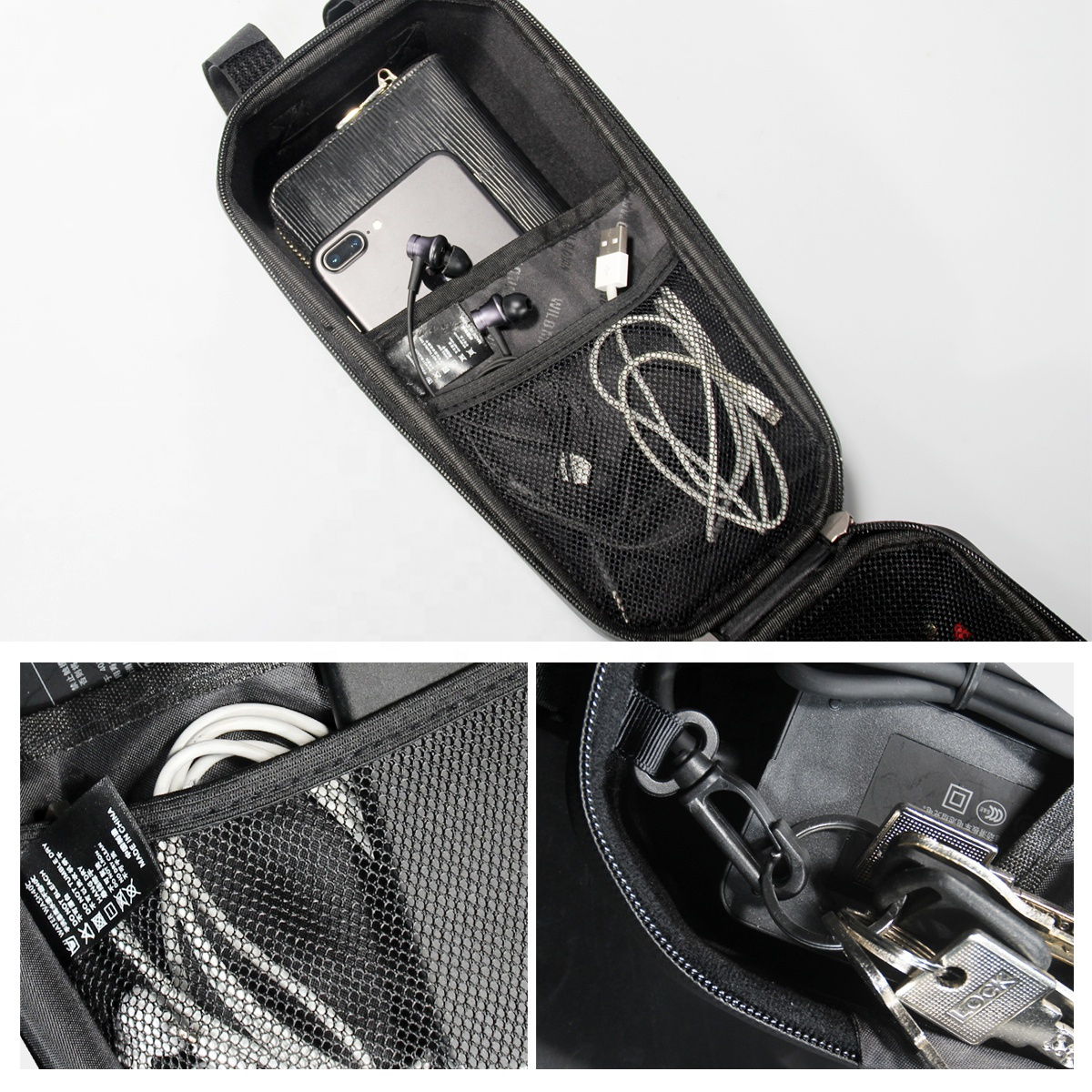 Główna przegroda podzielona została na jedną oddzieloną siatką, drugą oddzieloną materiałem i środkową, która zawiera również małą kieszonkę z siatki. Może służyć jako podręczna torebka z narzędziami do hulajnogi lub jako torba na nasze akcesoria.