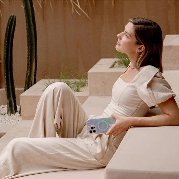 • Etui UNIQ Coehl Linear do iPhone 16 Pro Max wyróżnia się pastelowo-opalizującym efektem i smukłym designem. Chroni telefon przed upadkami z 2,4 m i obsługuje magnetyczne ładowanie MagSafe.