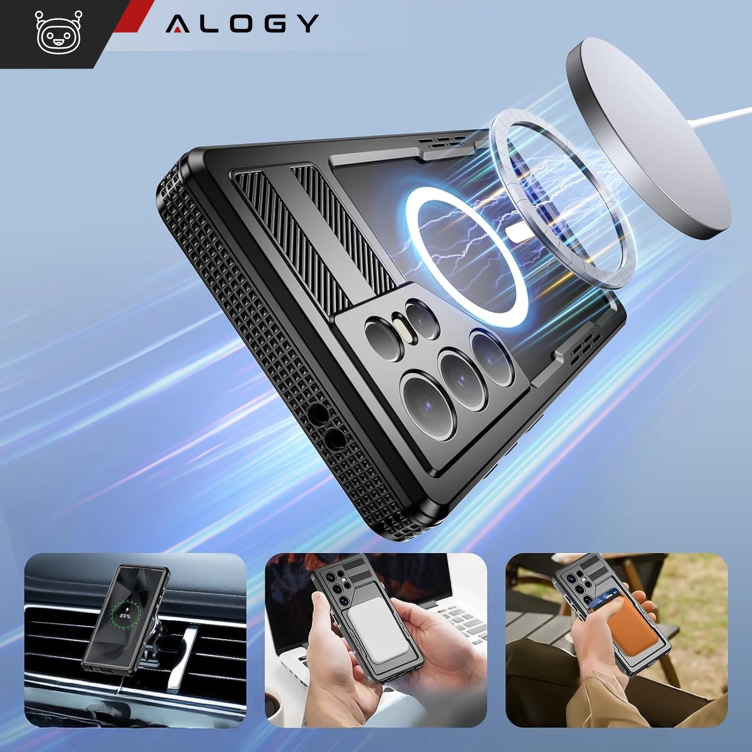Etui Wodoodporne Alogy IP68 Case z przezroczystym tyłem Pancerna obudowa 360 do MagSafe do Samsung Galaxy S24 Ultra