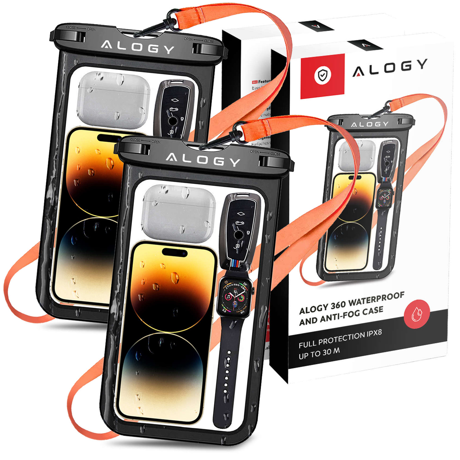 - Zestaw zawiera: 2x Etui wodoodporne Alogy, 2x Smyczka