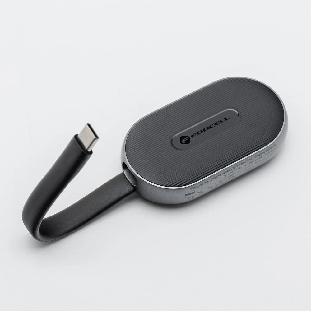 Wbudowany kabel USB-C: Pełni podwójną funkcję – służy do ładowania powerbanka oraz jako praktyczna zawieszka.