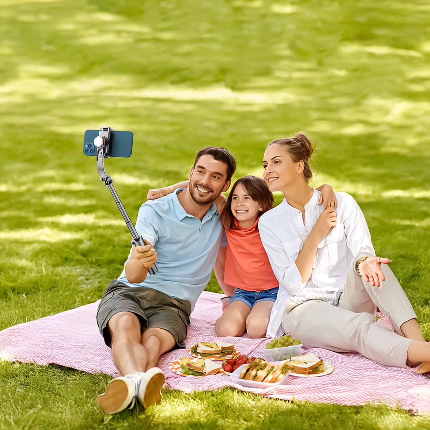 ⭐ 3w1 – gimbal, statyw i selfie stick – wszechstronne urządzenie, które dostosujesz do każdej sytuacji! Nagrywaj płynne filmy, rób selfie lub ustaw telefon na stabilnym statywie.