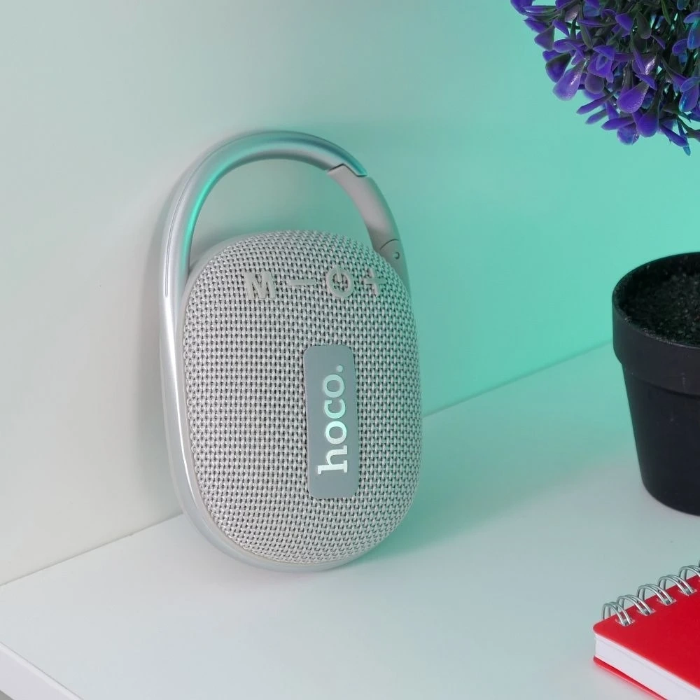HOCO HC17 w kolorze szarym to kompaktowy głośnik Bluetooth, który łączy poręczny design z wygodą codziennego użytkowania. Dzięki wbudowanemu karabińczykowi bez problemu przypniesz go do plecaka, torby czy paska – to idealny towarzysz na spacery, wycieczki czy piknik.