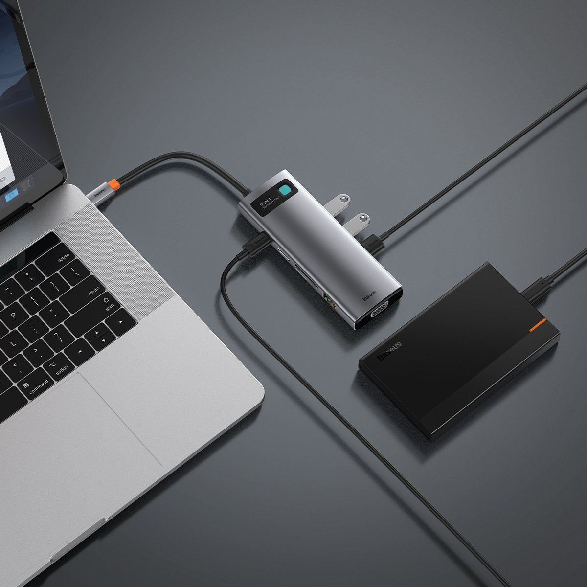 Ciesz się szybkim ładowaniem nawet kilku swoich urządzeń jednocześnie. Hub obsługuje protokoły PD oraz BC1.2. Co to oznacza w praktyce? Za jego pomocą błyskawicznie naładujesz swojego laptopa z mocą do 100 W - już nie musisz się obawiać, że nagle odmówi Ci posłuszeństwa. W tym samym czasie możesz też podłączyć do zasilania swój telefon lub tablet. Z Baseus wszystkie sprzęty, których potrzebujesz, będą zawsze gotowe do pracy!