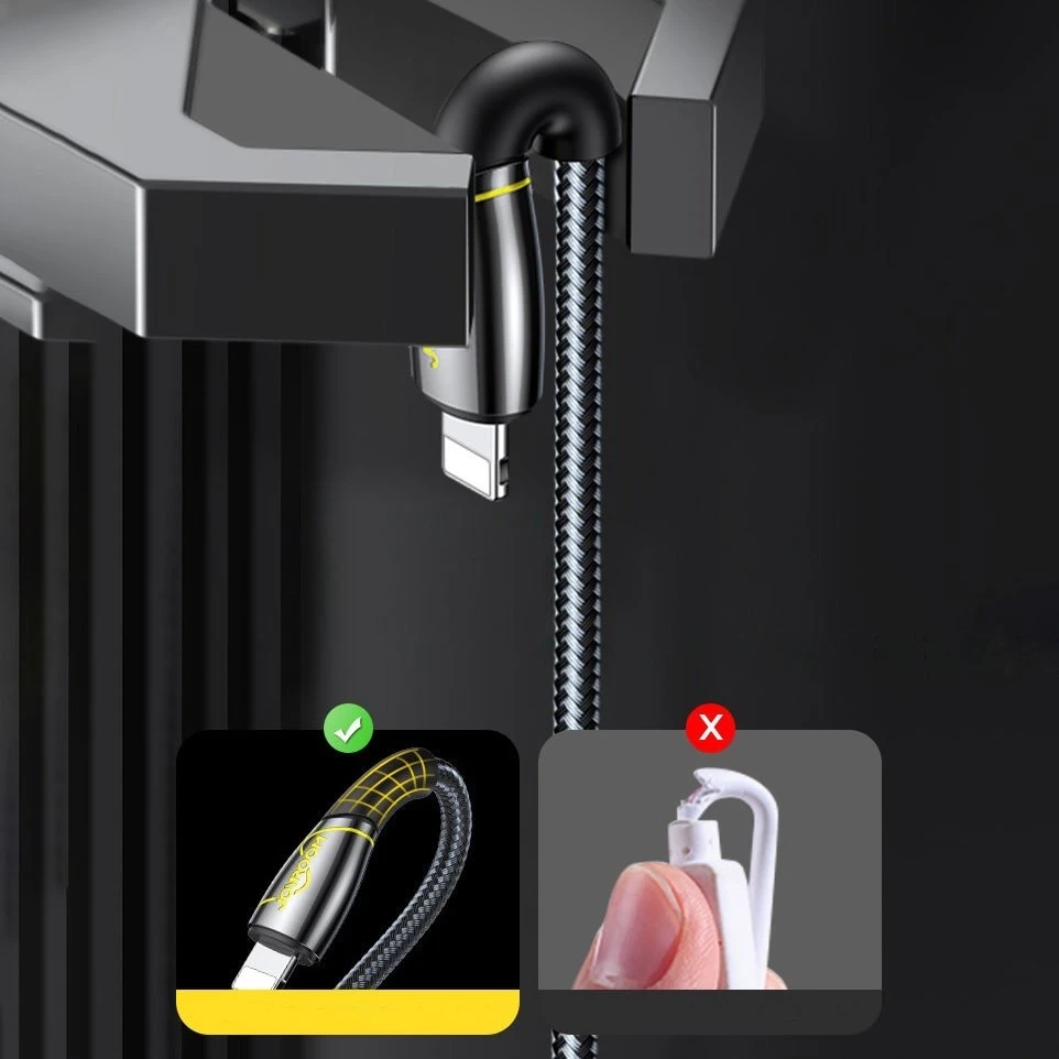 Ten kabel błyskawicznie naładuje baterię iPhone'a – jest kompatybilny z urządzeniami marki Apple ze złaczem Lightning. Gwarantuje stabilną i niezawodną pracę przez długi czas, a także wysoką efektywność. Wykonany z wysokiej klasy materiałów jest chroniony przed uszkodzeniami i się nie odkształca. Bateria nie ulega przegrzaniu i zniszczeniu. To zasługa takich detali jak gumowe zabezpieczenia chroniące wejścia przed zarysowaniem i innym mechanicznym uszkodzeniem