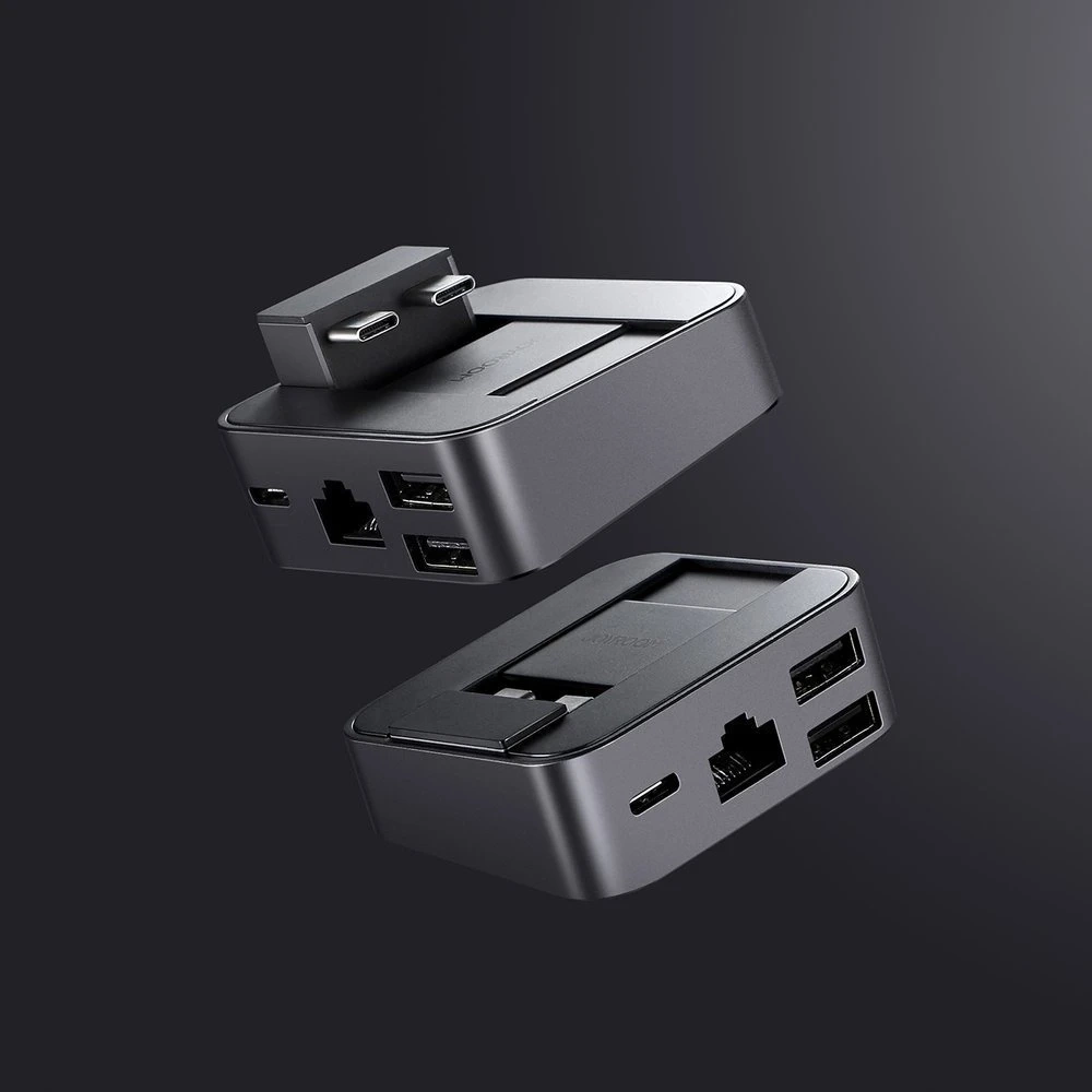 Z jednej strony HUB, a z drugiej strony podstawka. Urządzenie zaprojektowane specjalnie dla Apple MacBook Pro celem poprawy cyrkulacji powietrza, a w efekcie zapobieganiu przegrzaniom komputera.