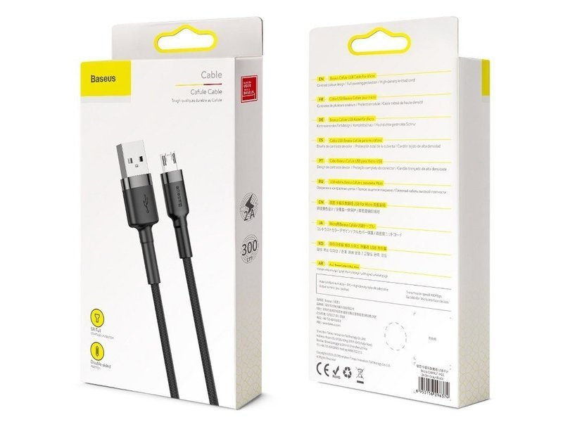 • Kabel 3m Baseus Cafule wytrzymały przewód nylon micro USB 2A to najwyższej jakości przewód, który służący do szybkiego ładowania, transferu danych oraz synchronizacji urządzeń wyposażonych w wejście micro USB.