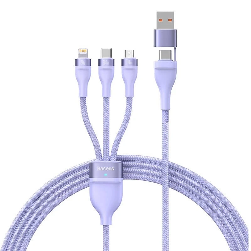 Kabel USB 3w1 Baseus Flash Series 2, USB-C + micro USB + Lightning, 100W, 1.5m (fioletowy)