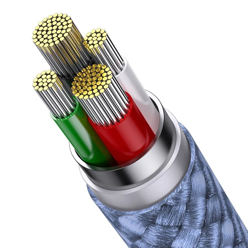 Producent Baseus Model CAXS000017 Kolor Niebieski Materiał Stop aluminium + nylon Długość 1.2 m Prąd 5V / 3.5A Prędkość transmisji 480 Mb/s Złącza USB-C, micro USB, Lightning