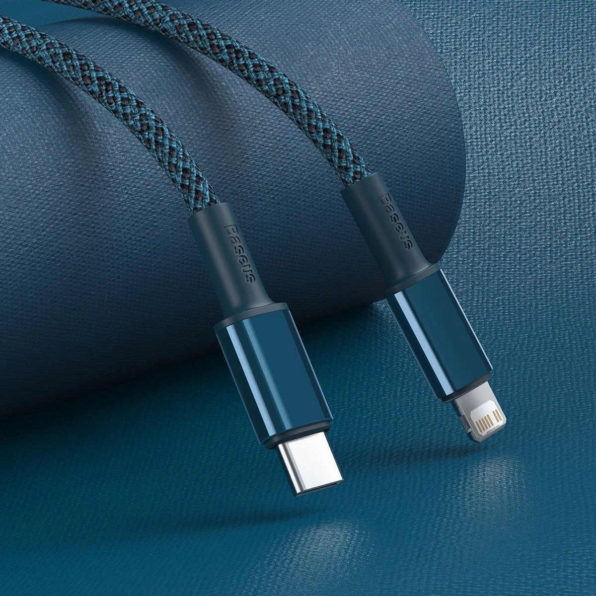 Producent Baseus Nazwa High Density Braided Fast Charging Data Cable Model CATLGD-A03 Materiał ABS, Drut spleciony o wysokiej gęstości Kolor Niebieski Długość 2 m Złącza USB-C, Lightning Prędkość transmisji 480 MB/s