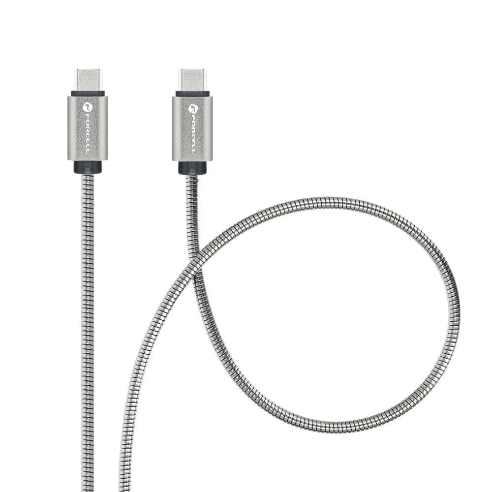 Kabel Forcell USB-C – USB-C 60 W ze stali nierdzewnej. Obsługuje Quick Charge 4.0, Power Delivery, Apple CarPlay i Android Auto. Szybkie ładowanie i transfer danych, idealny do smartfonów i laptopów.