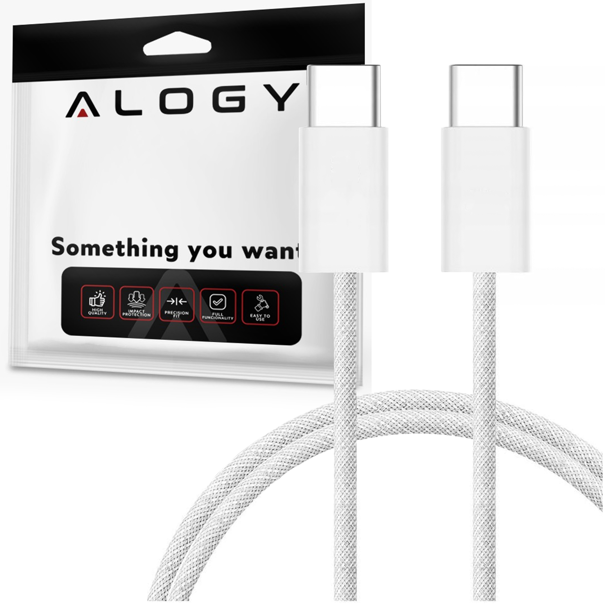 Opinie o Kabel USB-C typ C mocny szybki 60W PD 1M do iPhone 15 Alogy nylonowy przewód Biały