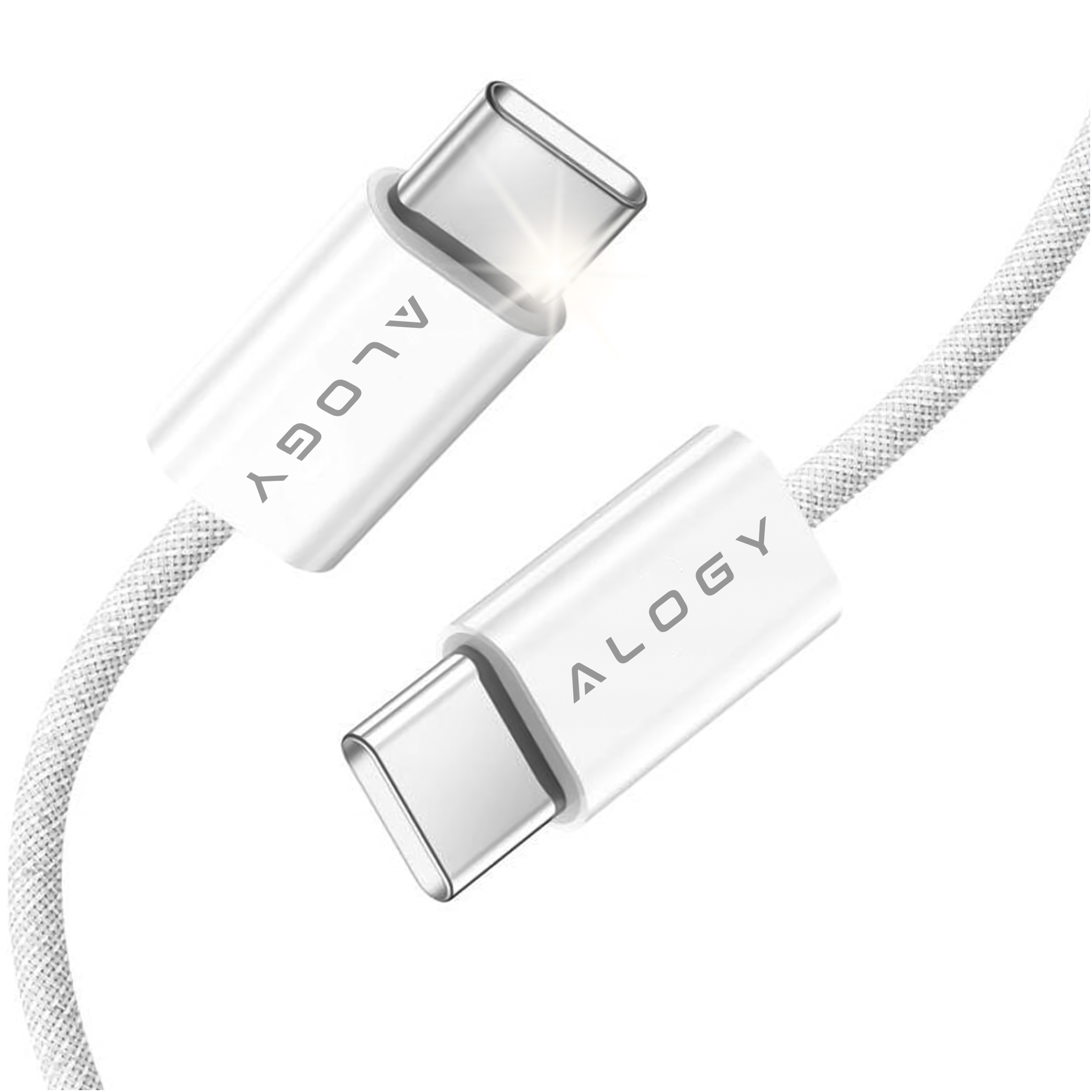 Opinie o Kabel USB-C typ C mocny szybki 60W PD 1M do iPhone 15/Pro/Max iPad MacBook nylonowy przewód Alogy Biały
