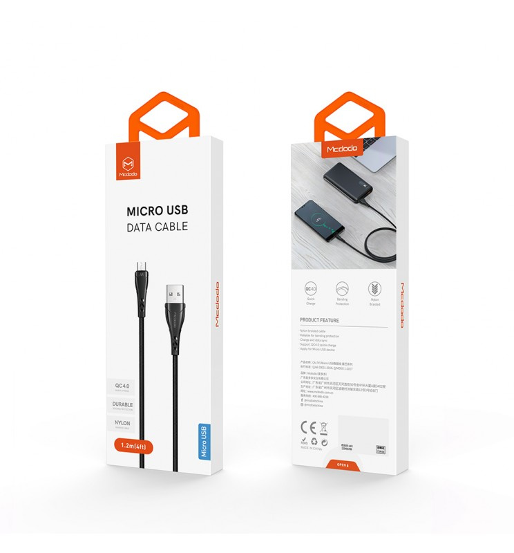 • Kabel USB do Micro USB, Mcdodo CA-7451, 1.2m umożliwia szybkie ładowanie QC 4.0 oraz obsługuje natężenie 2.4A. Pozwala także na błyskawiczny przesył plików z prędkością do 480 Mbps.