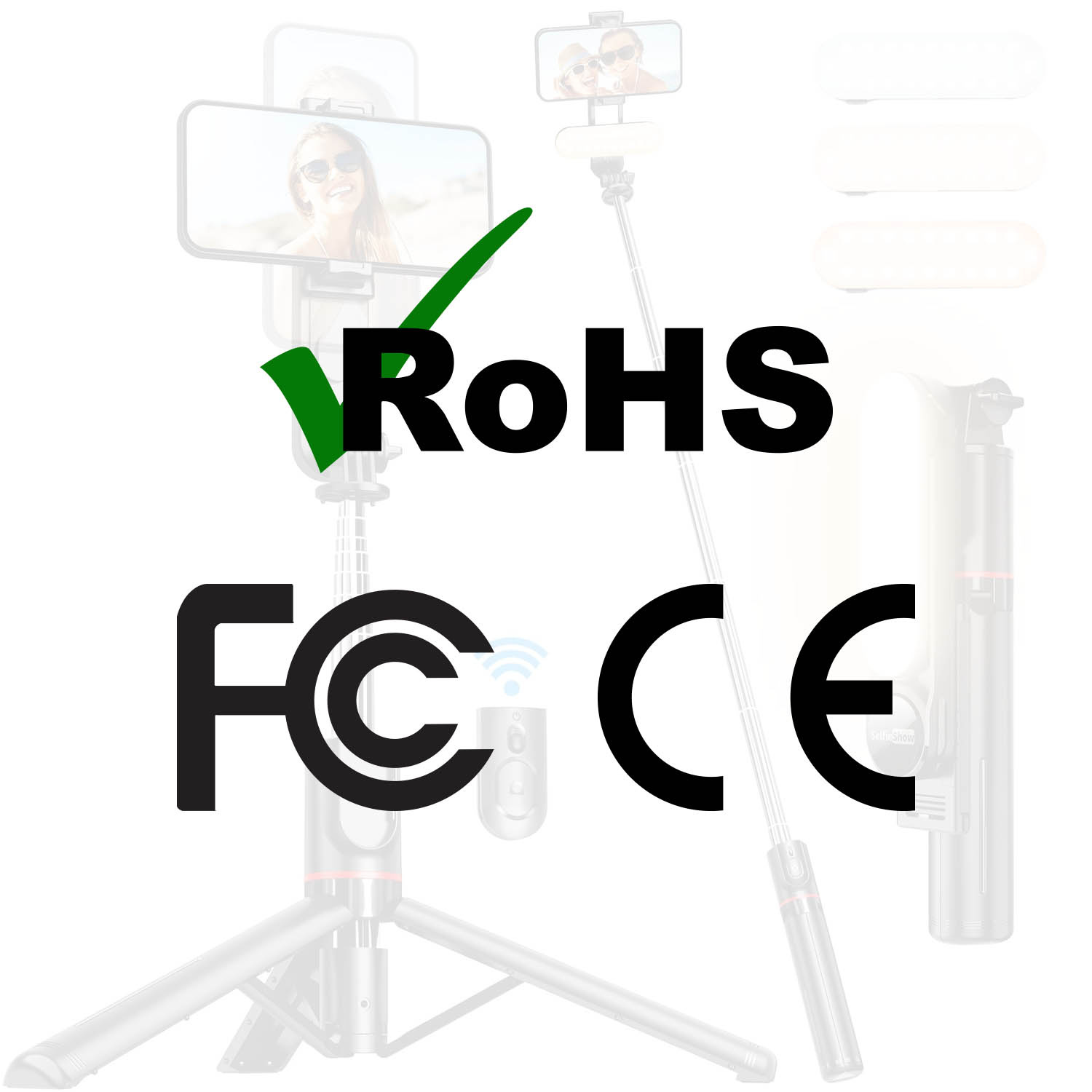 • Zestaw zawiera: 1x Kijek Selfie Stick z funkcją statywu, 1x Odczepiana lampa LED, 1x Pilot na Bluetooth, 1x Oryginalne opakowanie