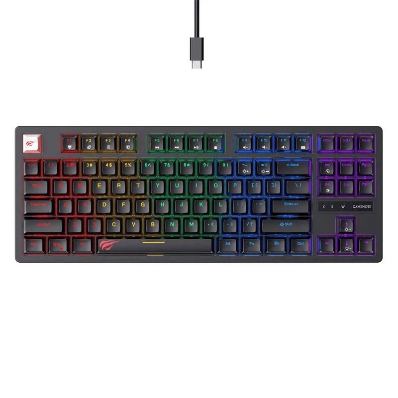 Havit KB892L to kompaktowa klawiatura gamingowa, która oferuje doskonałą funkcjonalność oraz nowoczesny design. Wyposażona w 87 klawiszy, zapewnia wszystkie niezbędne funkcje w ergonomicznym i kompaktowym formacie. Dzięki podświetleniu RGB, wytrzymałej konstrukcji i wygodnemu połączeniu przez USB, klawiatura spełni oczekiwania zarówno graczy, jak i osób poszukujących niezawodnego sprzętu do codziennej pracy.