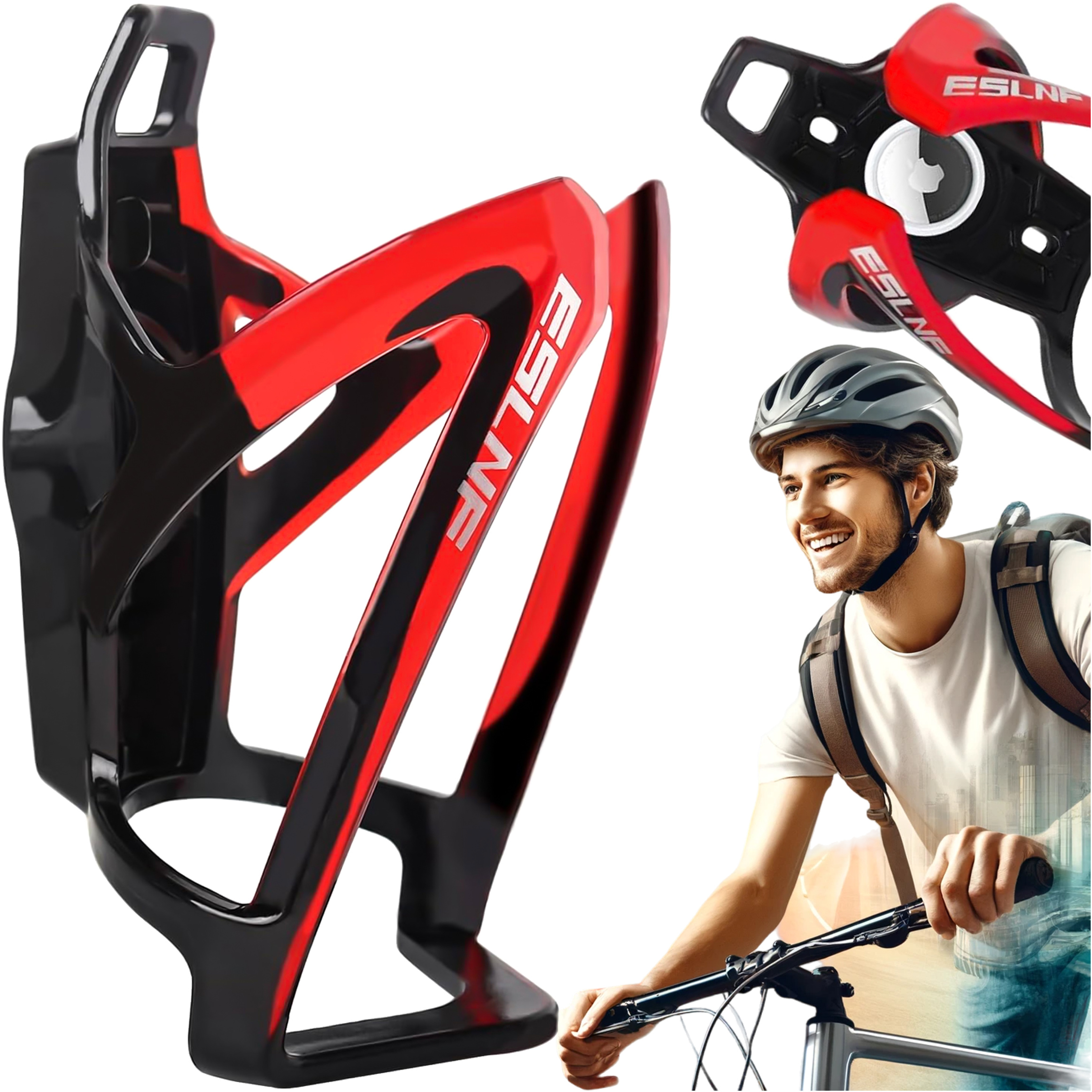 Opinie o Koszyk na bidon napój butelkę wodę uchwyt rowerowy do roweru bidonu uniwersalny z miejscem na Airtag Czarno-czerwony