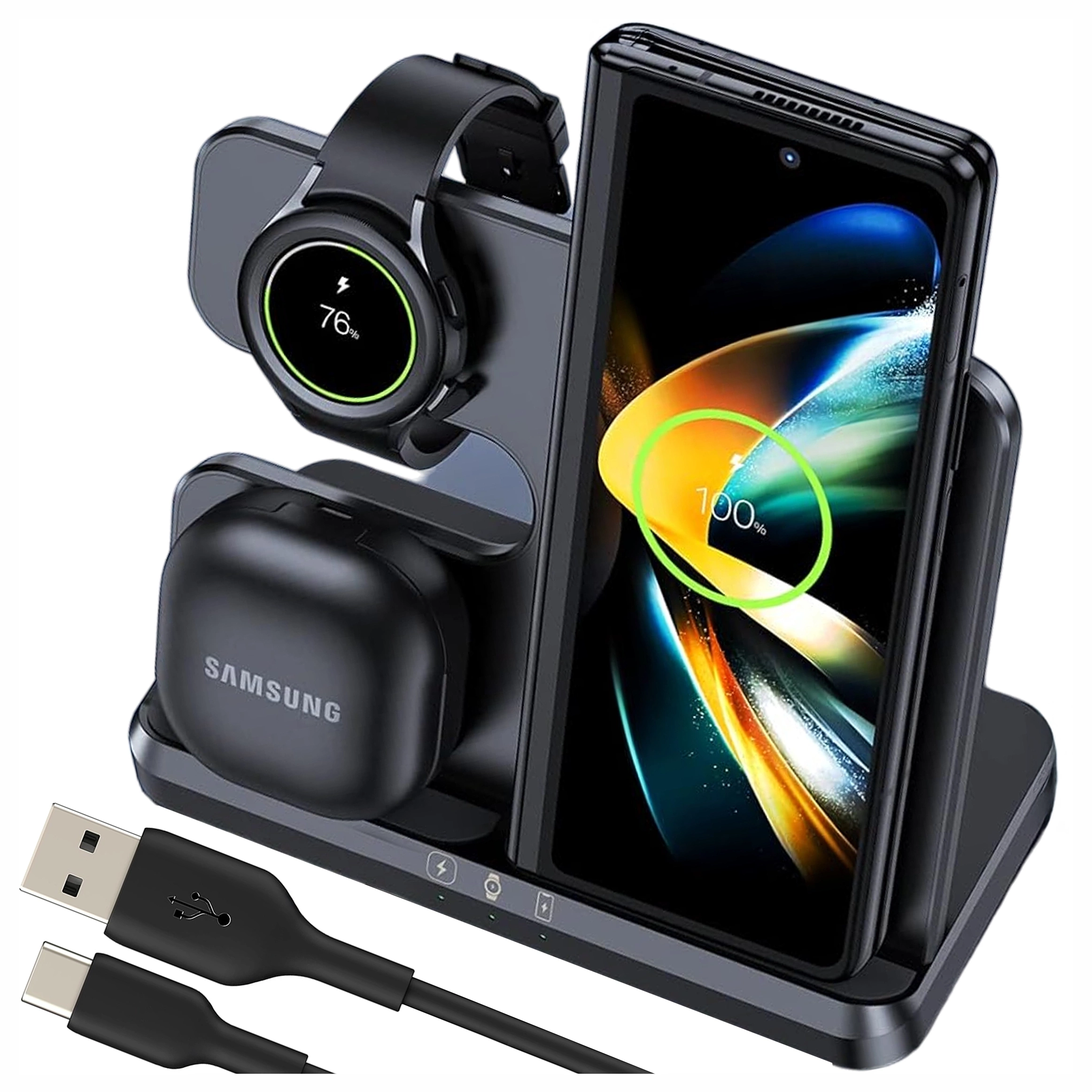 Opinie o Ładowarka Bezprzewodowa Indukcyjna 3w1 Qi 3.0 Szybka do Samsung S22 S23 S24 S25 Galaxy Watch Buds Stacja czarna