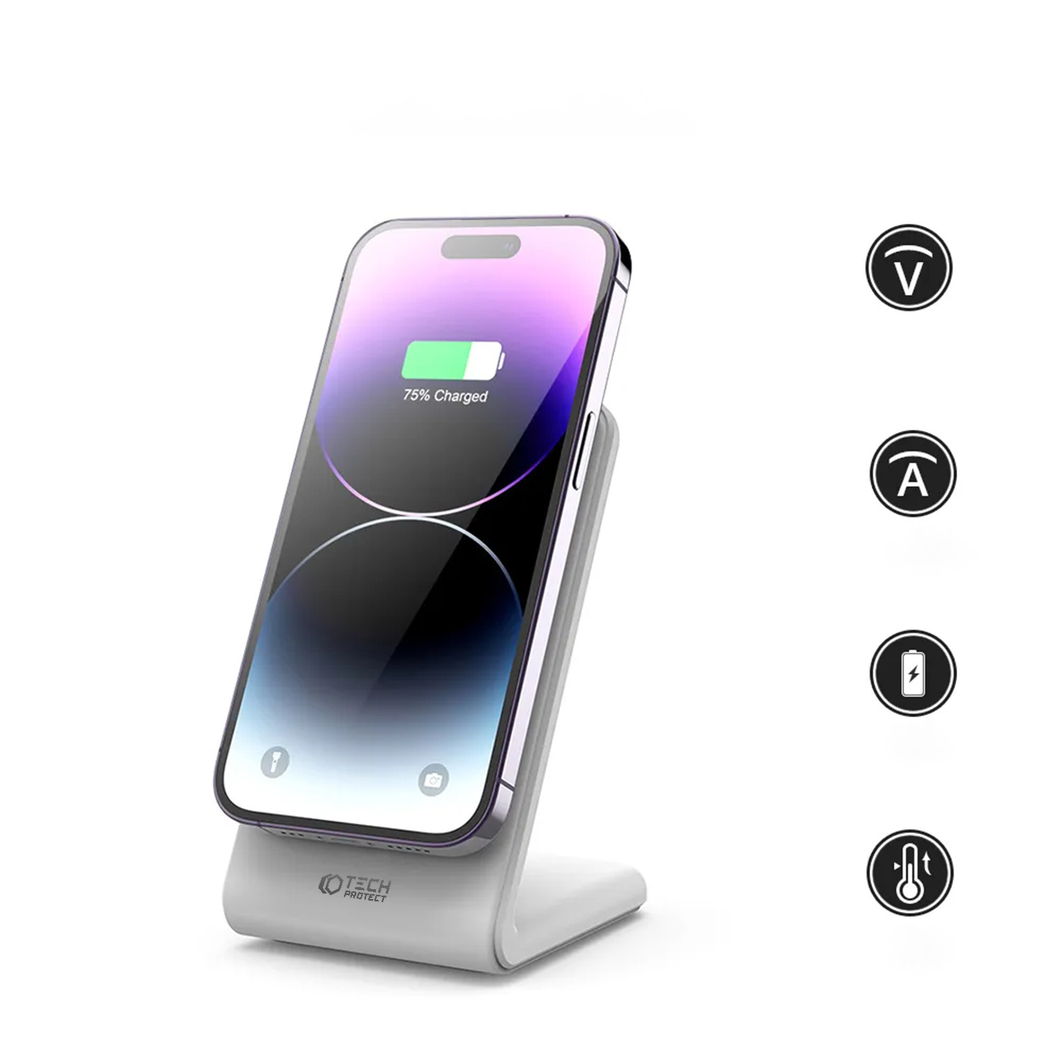 Ładowarka indukcyjna Qi Mag Safe 15W do iPhone bezprzewodowa stacja biurkowa biała