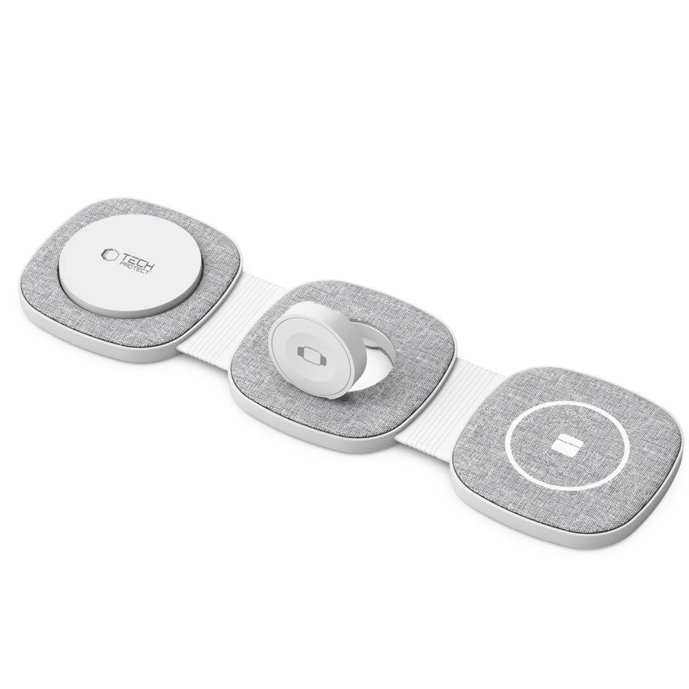 Tech-Protect QI15W-A32 czyli wielozadaniowa ładowarka kompatybilna z urządzeniami marki Apple, obsługującymi funkcję ładowania Magsafe. Posiada również opcję bezprzewodowego ładowania zegarka Apple Watch.