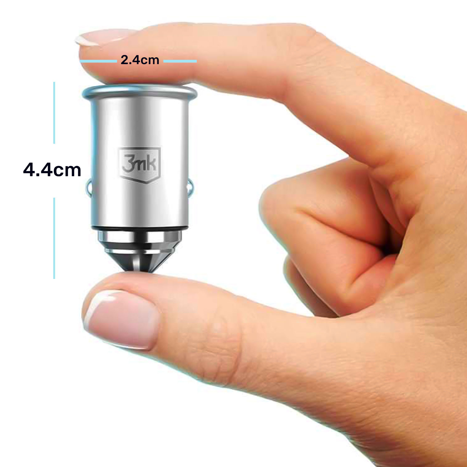 Ładowarka samochodowa od marki 3mk to produkt wykonany z aluminium, odpornego na ciepło i upadki. Elegancki i stylowy design nadaje eleganckiego charakteru, a dzięki niewielkim wymiarom (szerokości 2.4cm oraz wysokości całkowitej: 4.4cm), będzie kompatybilny z większością samochodów osobowych, ciężarowych z gniazdem zapalniczki od 12 do 24V.