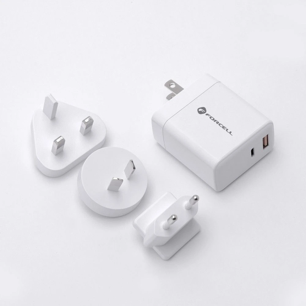 Ładowarka sieciowa Forcell 45W to wszechstronne urządzenie, które pozwala na szybkie i bezpieczne ładowanie urządzeń mobilnych. Dzięki portom USB-C (45W) i USB-A (18W) umożliwia jednoczesne ładowanie dwóch urządzeń, takich jak smartfony, tablety, a nawet laptopy.