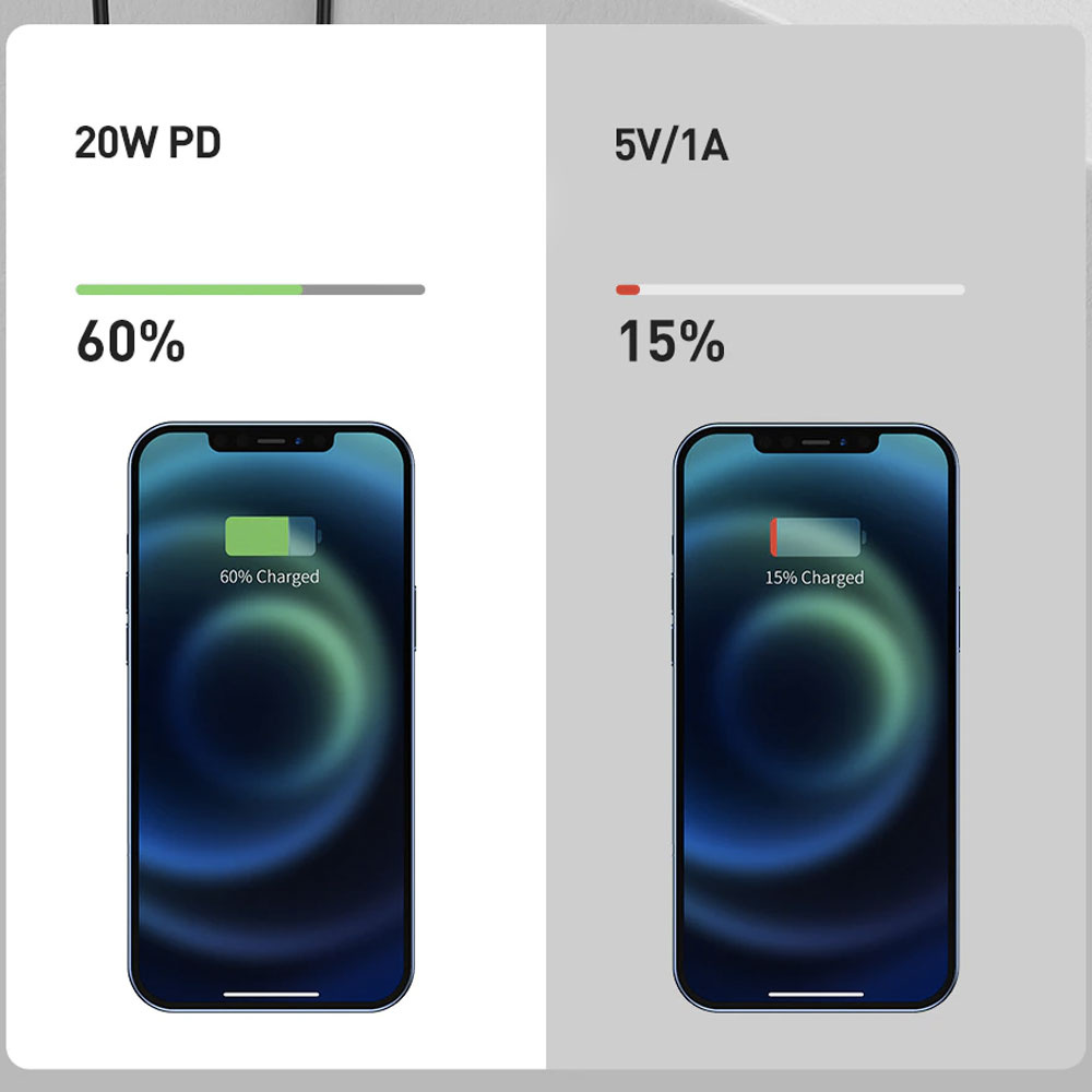 Produkt wpiera szybkie ładowanie Power Delivery, dzięki czemu nasze urządzenia zostaną naładowane 4 razy szybciej niż standardową ładowarką.