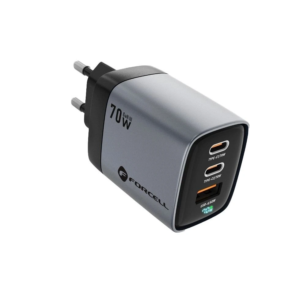 Nowoczesna ładowarka sieciowa Forcell F-ENERGY GaN III 70W to idealne rozwiązanie dla wymagających użytkowników. Wykonana w technologii GaN III, łączy wysoką wydajność, energooszczędność i kompaktowy rozmiar. Wyposażona w trzy porty (2x USB-C i 1x USB-A), umożliwia ładowanie do trzech urządzeń jednocześnie, w tym smartfonów, tabletów i laptopów.