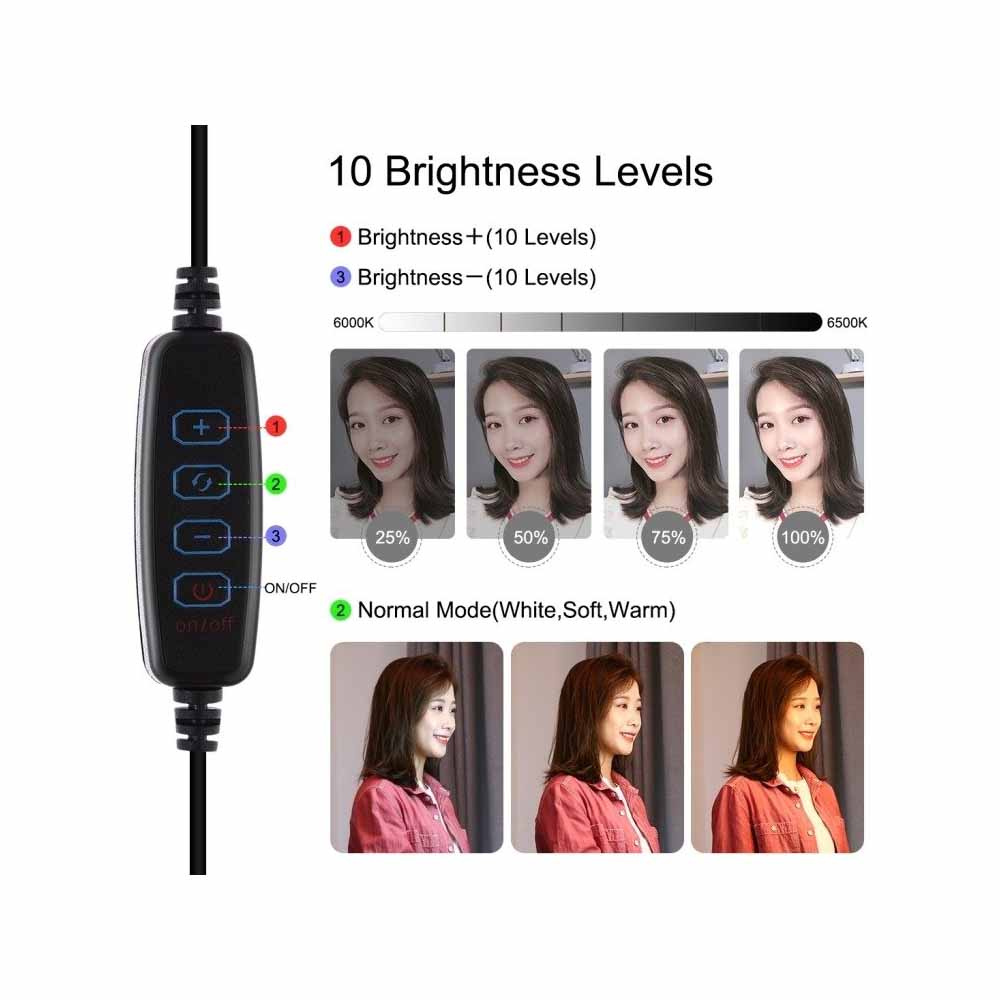 Lampa posiada 3 tryby oświetlenia: biały, miękki, oraz ciepły w zależności od potrzeb możesz dopasować odpowiednią temperaturę barwową. Ponadto możliwe jest dopasowanie jasności w 10 poziomach. Wszystko to wyregulujesz przy pomocy pilota, który zamontowany jest do kabla zasilającego.