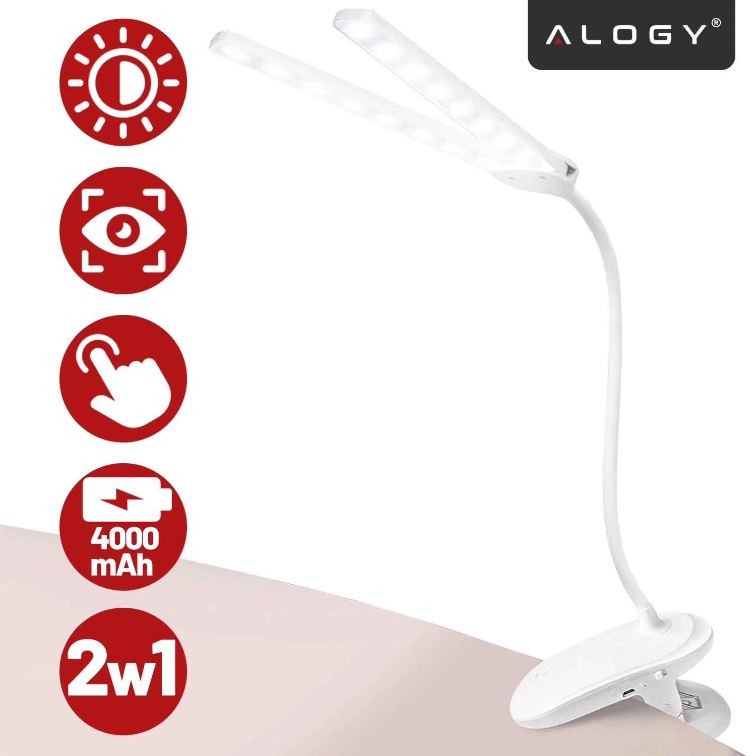▶️ Lampka Biurkowa LED Alogy SmartClip™ Light 4000 mAh z regulacją - Zawsze doświetlone biurko