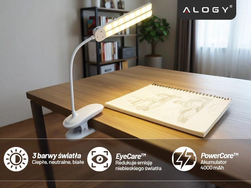 ▶️ Lampka Biurkowa LED na Klips Alogy SmartClip™ z Podwójnym Oświetleniem i 3 Temperaturami Barwy Światła