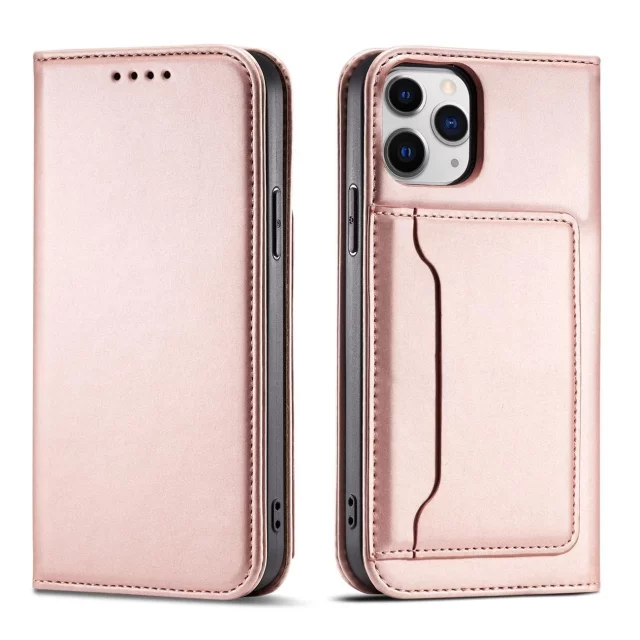 Magnet Card Case etui do iPhone 12 pokrowiec portfel na karty kartę podstawka różowy