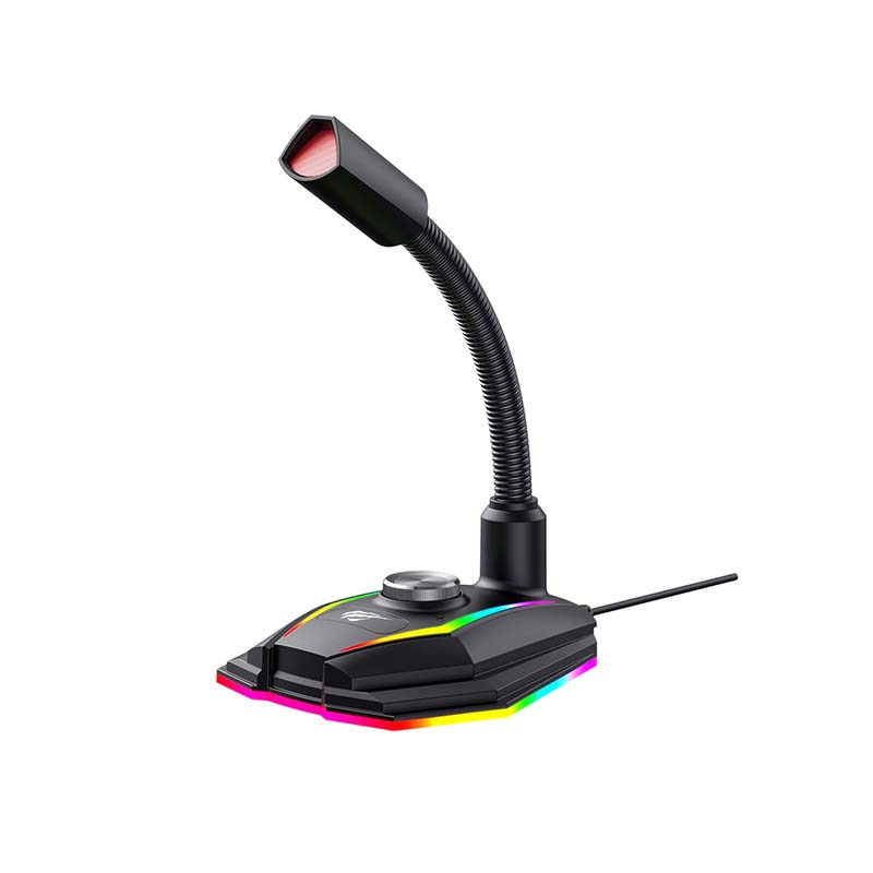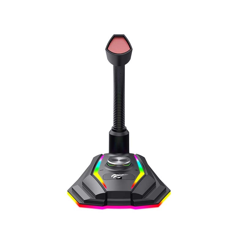 Mikrofon Havit został zaprojektowany specjalnie dla wymagających graczy. Zastosowanie najnowszych technologii pozwala spełnić wymogi na najwyższym poziomie. Wyposażony w solidną podstawę, zapewnia stabilność, a dzięki interfejsowi USB i plug&play z łatwością podłączysz go do kompatybilnego urządzenia. Jest wielokierunkowy, co oznacza, że lepiej zbiera dźwięki dookoła, umożliwiając swobodną komunikację z innymi graczami, a podświetlenie RGB nadaje mu gamingowego charakteru.