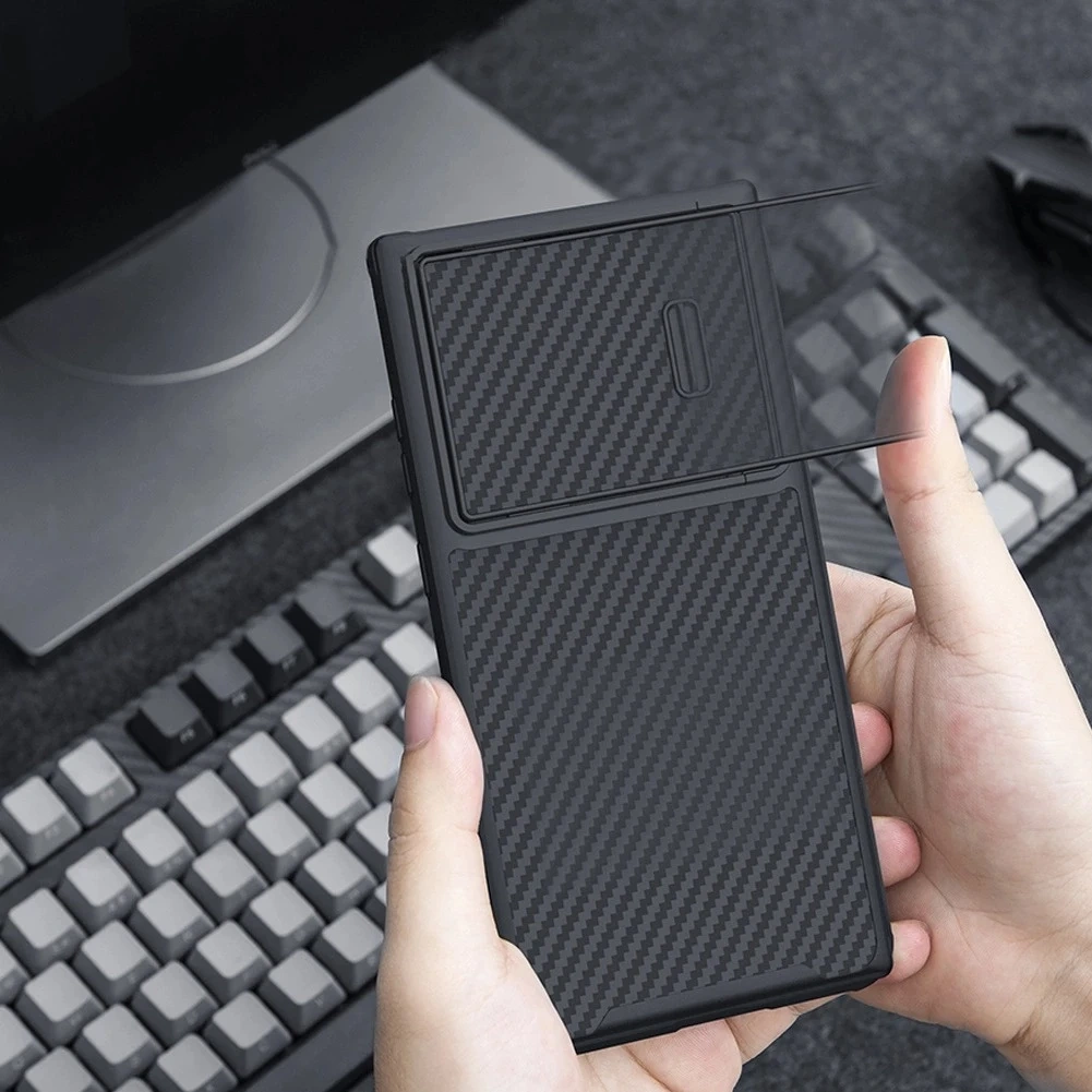 Etui z serii Synthetic Fiber S Case marki Nillkin to bardzo wytrzymały pokrowiec, który jest w stanie uchronić twój Samsung Galaxy S23 Ultra od poważnego uszkodzenia po jego upadku na podłogę. Kupując nowy telefon warto jest od razu zaopatrzyć się w porządne etui, tym bardziej kiedy zdecydowałeś się na urządzenie z najwyższej półki cenowej. Wystarczy jeden nieostrożny ruch, żeby telefon spadł na ziemię. Smartfon, na którym było założone etui, a tym bardziej Nillkin Synthetic Fiber S Case ma dużo większe szanse na wyjście bez szwanku z takiego wypadku. Pokrowiec dodatkowo posiada przesuwaną osłonę na tylny aparat. Dzięki zaślepce szkło kamery jest chronione przed porysowaniem. Jest do też dodatkowy plus dla osób ceniących prywatność i bezpieczeństwo swoich danych. Zakryta kamera uniemożliwia dostęp do nagrywania obrazu w przypadku kiedy ktoś uzyska zdalny dostęp do telefonu i włączy podgląd z głównej kamery.
